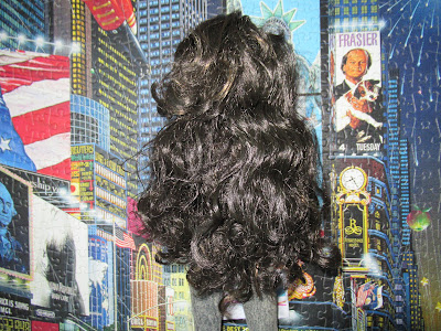 3 perruques différentes ça change complètement son look ! elle porte un petit ensemble en skai fait par ma Francine..